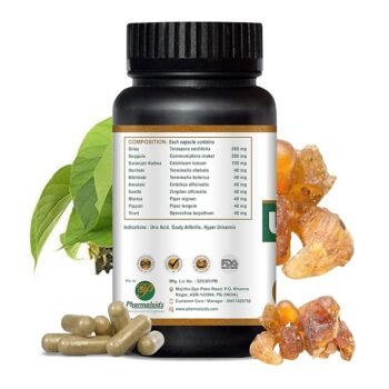 Guggul helps relieve joint pain, inflammation, and stiffness by inhibiting the synthesis of prostaglandins and the activation of nuclear factor-kappa B (NF-kappaB). It possesses anti-inflammatory and anti-arthritic properties.